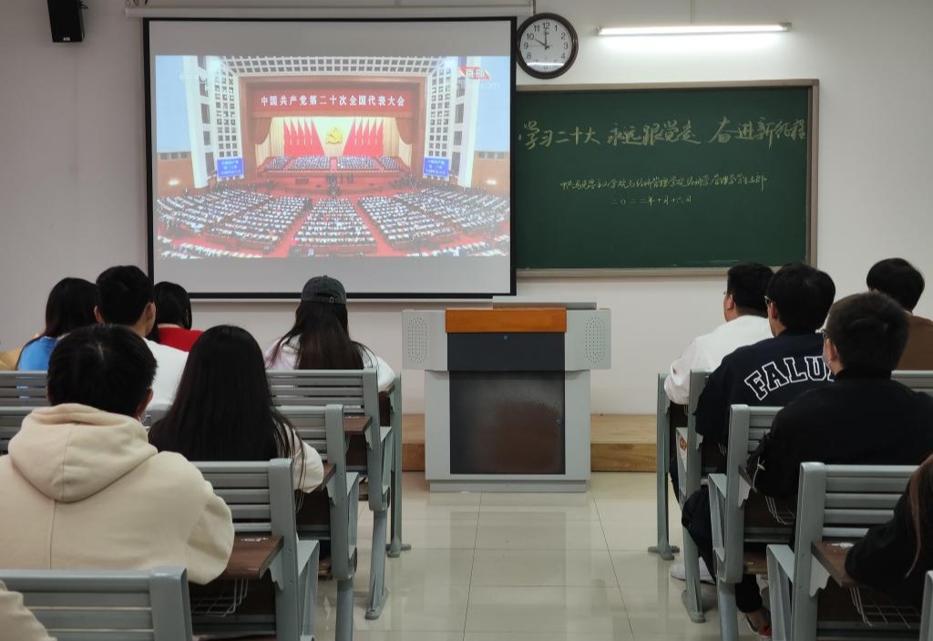 10月16日上午10时,万众瞩目的中国共产党第二十次全国代表大会在北京隆重召开,习近平总书记代表十九届中央委员会向大会作报告,为深入学习宣传贯彻党的二十大精神,永利集团88304官网集团和经济与管理学院党总支第一时间组织师生党员干部在第一教学楼214、215教室集中观看大会现场直播。