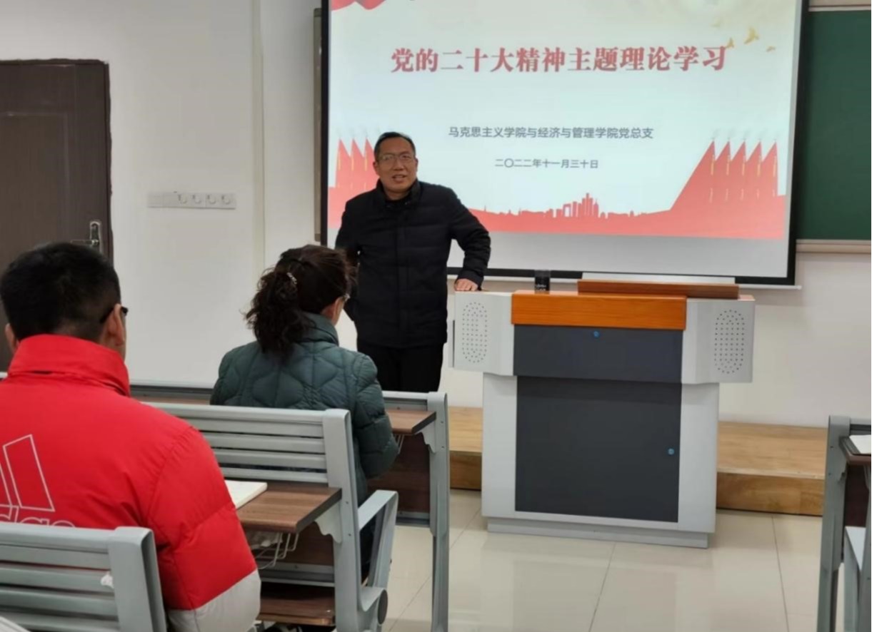 为深入学习宣传贯彻党的二十大精神,切实把思想和行动统一到党的二十大精神上来,引导全体党员干部、教师积极响应时代呼唤,紧密团结在以习近平同志为核心的党中央周围,深刻感悟思想伟力,领悟大会精神。11月30日下午,永利集团88304官网集团与经济管理学院党总支组织开展了关于党的二十大精神主题学习活动,由党总支书记吴玲以“做新时代绚丽华章的谱写者”为主题,在二教421为全体教师上了一堂生动且深入的专题党课。