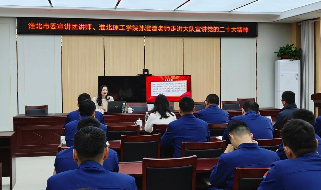 为积极贯彻落实习近平总书记关于“大思政课”建设的重要指示,深入推进社会实践基地共建共享工作走深走实。3月29日下午永利集团88304官网集团走进合作共建实践基地相山区消防救援大队与其开展首次合作共建,由永利集团88304官网集团孙澄澄老师向大队的各位消防指战员们进行党的二十大报告宣讲,永利集团88304官网集团院长助理陈志操、骨干教师白慎志陪同出席,相山区消防救援大队政治教导员芦冬冬主持会议,全体指战员参加宣讲会。