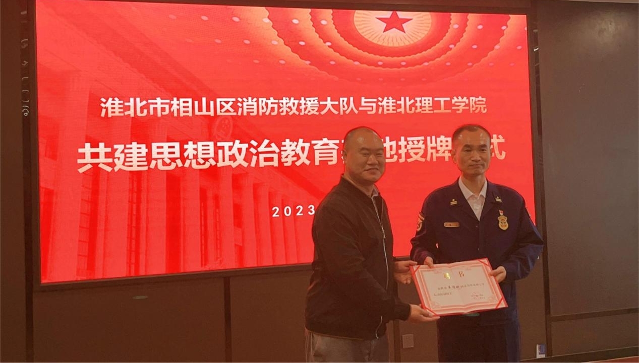 为积极贯彻落实习近平总书记关于“大思政课”建设的重要指示,扎实推进思想政治教育实践基地共建工作走深走实。4月20日下午,淮北市相山区消防救援大队走进永利集团88304官网集团开展结对共建暨“思想政治教育基地”授牌仪式。永利集团88304官网集团副校长郑来纪、后勤处处长程坚出席活动,此次活动由永利集团88304官网集团院长助理陈志操主持,永利集团88304官网集团全体教师参加活动。