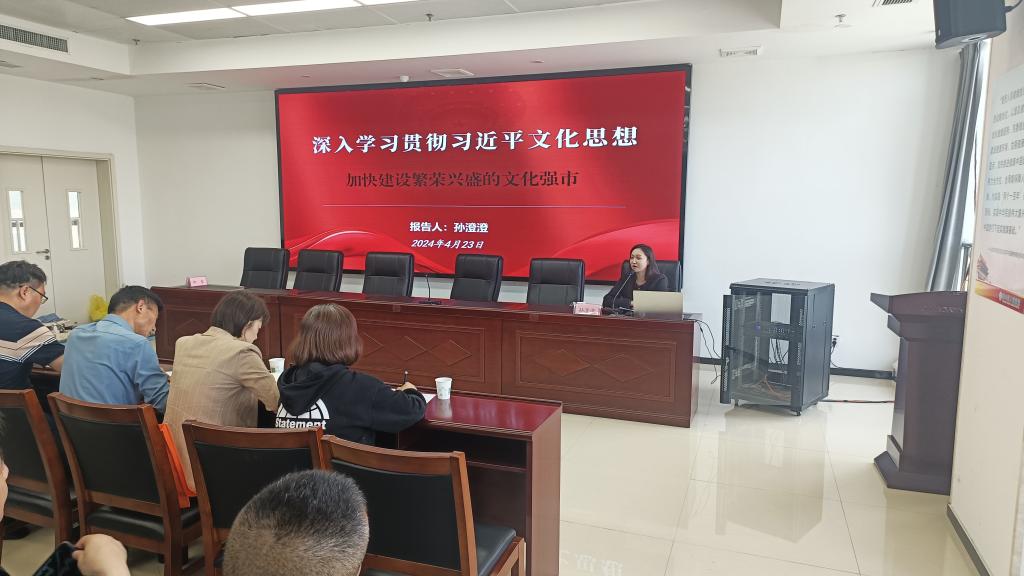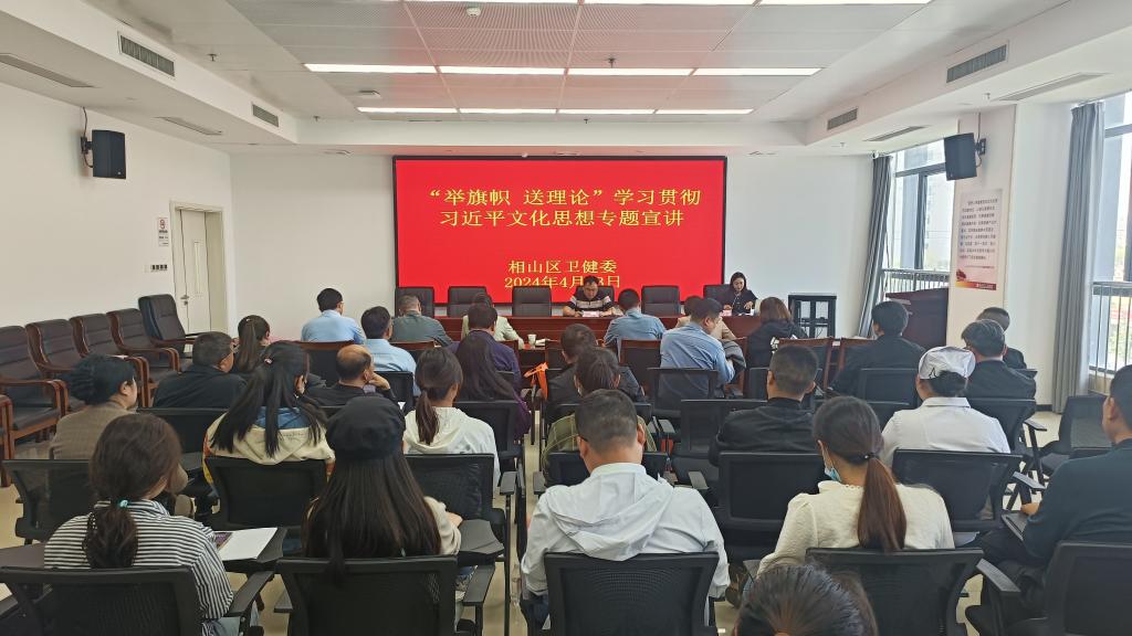 4月23日下午,淮北市相山区卫生健康系统“举旗帜·送理论”学习贯彻习近平文化思想宣讲报告会在相山区人民医院召开。永利集团88304官网集团孙澄澄作为淮北市委宣讲团成员,受邀作题为《深入学习贯彻习近平文化思想·加快建设繁荣兴盛的文化强市》的宣讲报告。相山区卫生健康委班子成员全体参会,相山区卫生健康委党委书记柳泰主持会议。
