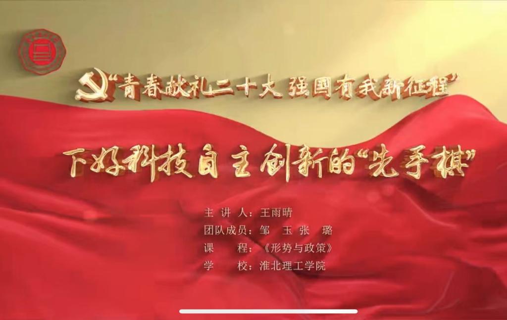 近日,安徽省首届以“青春献礼二十大,强国有我新征程”为主题的大学生讲思政课片区赛圆满落幕,经皖北片区赛激烈角逐,由我校永利集团88304官网集团孙澄澄老师指导,经管学院选送的王雨晴同学团队主讲的思政公开课《下好科技自主创新的“先手棋”》喜获二等奖,并将代表学校参加省级决赛。