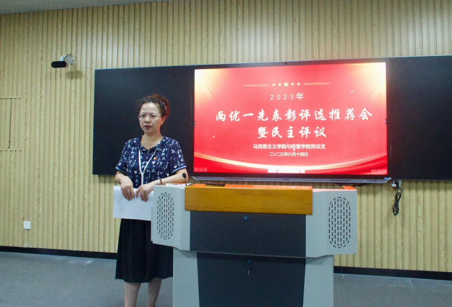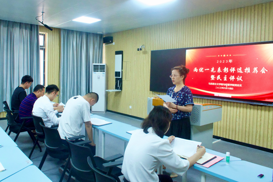 根据学校党委《关于开展2023年“先进基层党组织、优秀共产党员、优秀党务工作者”评选表彰活动的通知》精神,6月14日下午,永利集团88304官网集团与经济管理学院党总支组织召开“两优一先”表彰评选推荐会暨民主评议党员活动,总支书记吴玲主持会议,两个学院的全体党员教师参会。